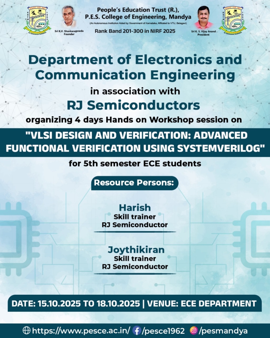 ECE at PESCE Mandya is equipped with well-established labs, including VLSI and Embedded System labs, Signal Processing labs, and Communication labs. These facilities provide hands-on experience and support various student and faculty research initiatives.