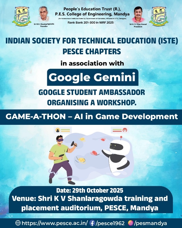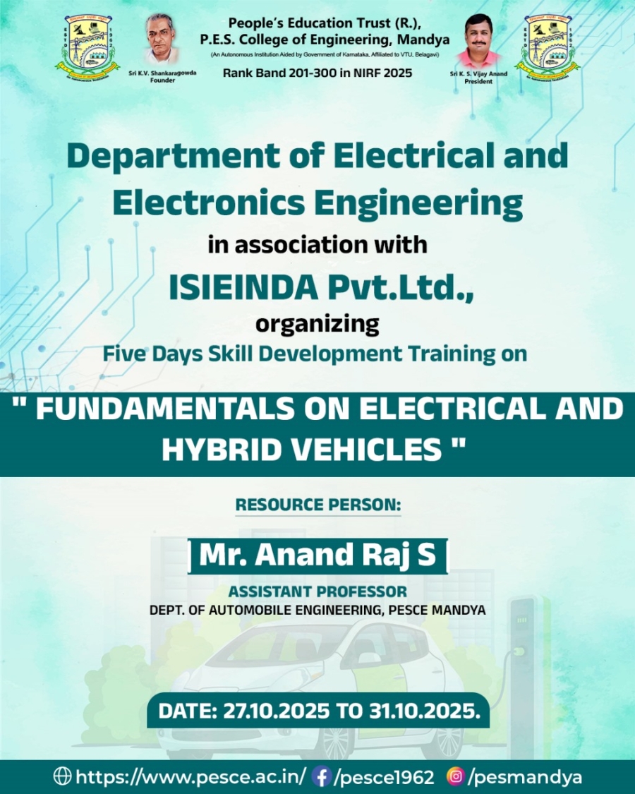 P. E. S. College of Engineering, Mandya was started in the year 1962 by People’s Education Society®, Mandya under the leadership of Late Sri K. V. Shankara Gowda.