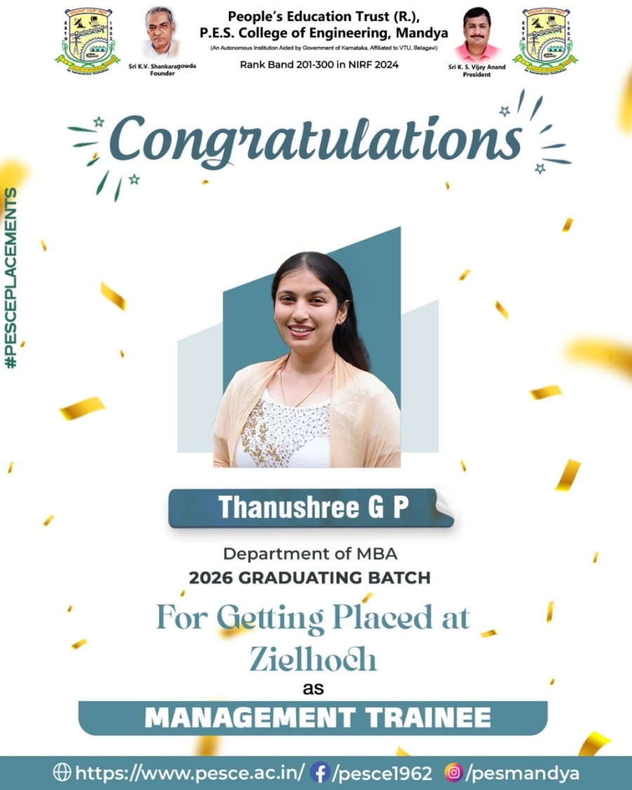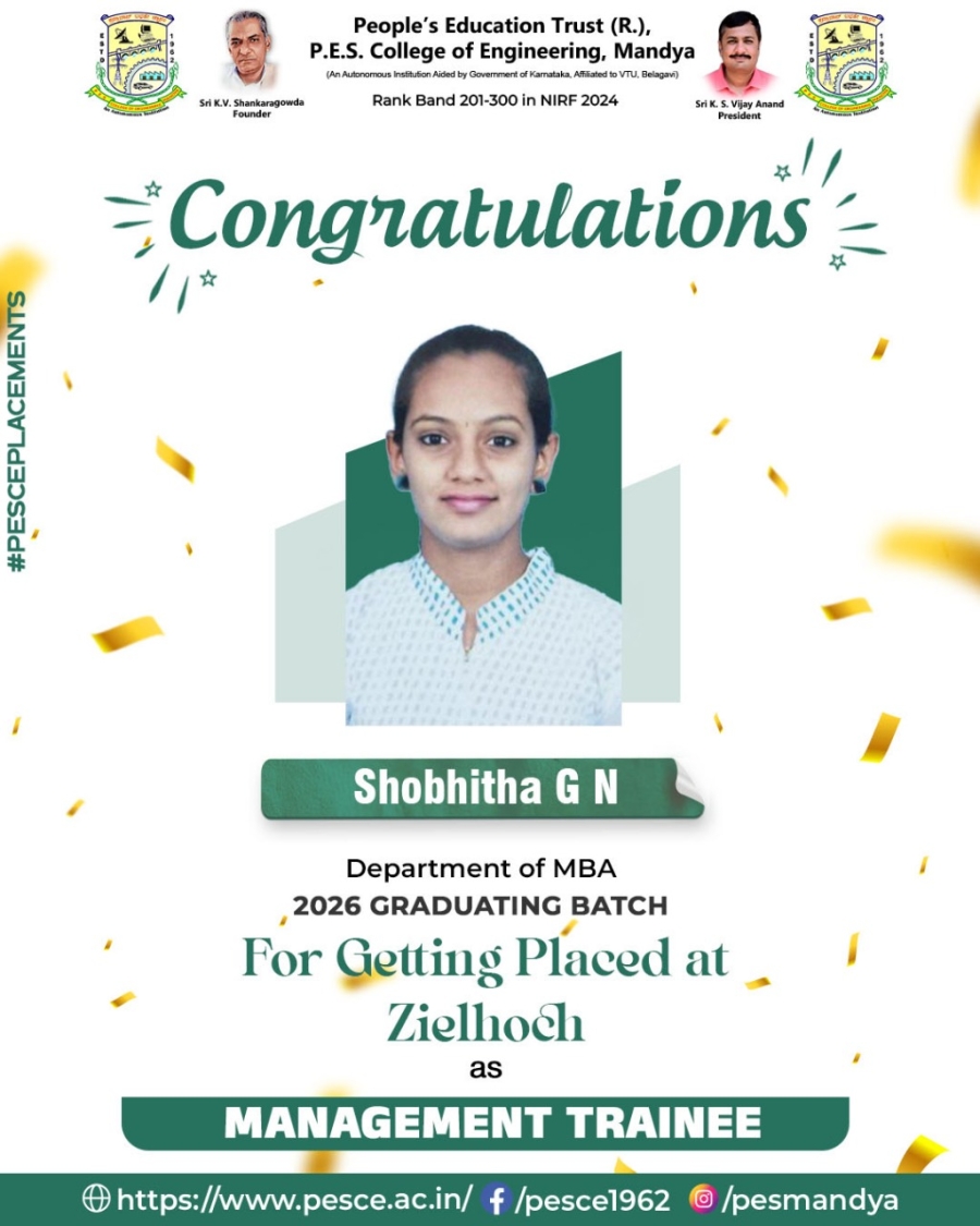 Prof. Sinchana B S | Assistant Professor | P.E.S College of Engineering | PG | sinchanabs@pesce.ac.in |